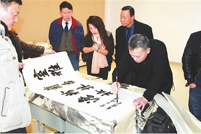 這次筆會是由高郵市工商聯(lián)、高郵市總商會主辦,由揚州市紅旗電纜制造有限公司、春色滿園農(nóng)業(yè)發(fā)展有限公司承辦。筆會特地邀請了中國書法家協(xié)會會員趙萬和、葛長臻,中國美術(shù)家協(xié)會會員張建華,上海市書法家協(xié)會會員董曉迅,當代著名職業(yè)陶刻家熊立新,揚州市美協(xié)理事張研等。書畫家們用他們的筆墨為美麗高郵書畫,為美麗菱塘?xí)嫞鼮樽龀龀删偷募t旗電纜公司、春色滿園農(nóng)業(yè)發(fā)展有限公司書畫。